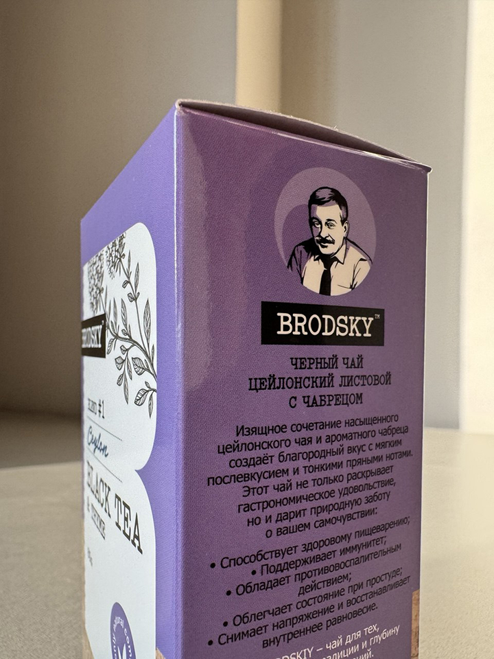 Компания Eva-Phyto представила особенную лимитированную коллекцию чёрного цейлонского чая BRODSKY с добавлением чабреца, посвящённую памяти основателя бренда — Славика Мордковича Бродского.
